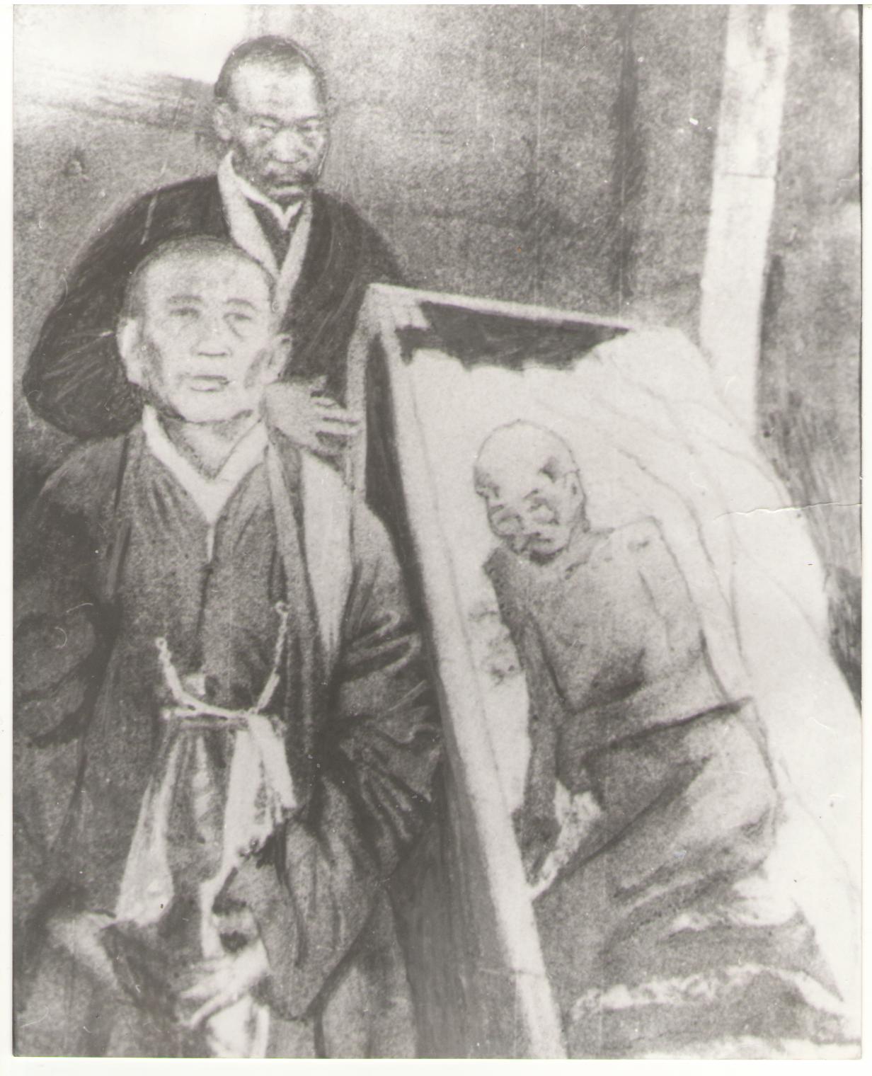 Гелюнги, опечаленные кончиной настоятеля, приняли эти свидетельства за приметы необыкновенного свойства и предназначения своего багши. Они вырыли из могилы его тело, поместили в легкую деревянную гробницу, над которой разбили юрту.